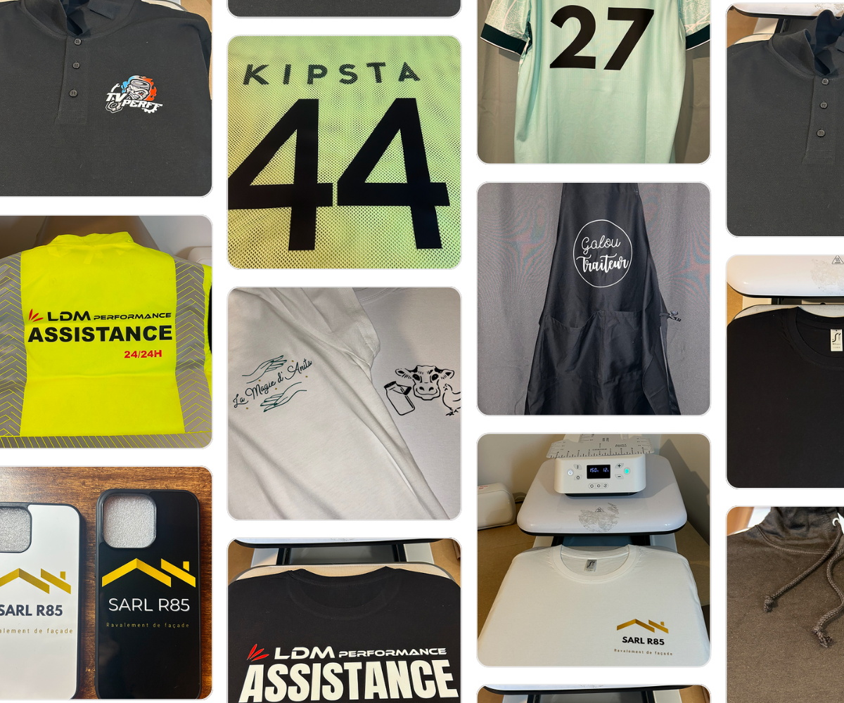 Notre entreprise est spécialisée dans la personnalisation de textiles (t-shirts,sweats, vestes, etc.) ainsi que d’objets publicitaires (porte-clé, mugs, coque de téléphone,etc.).
